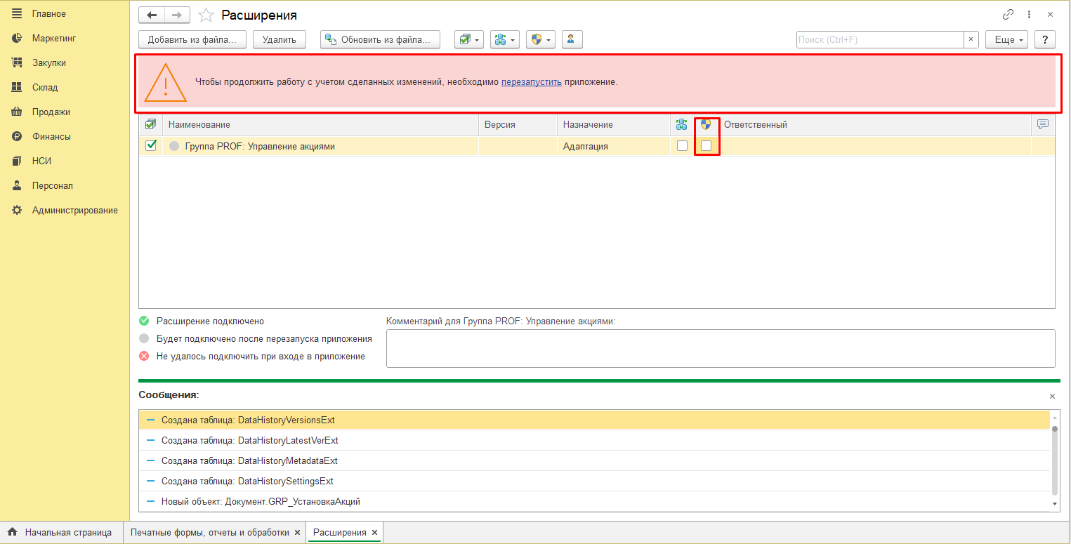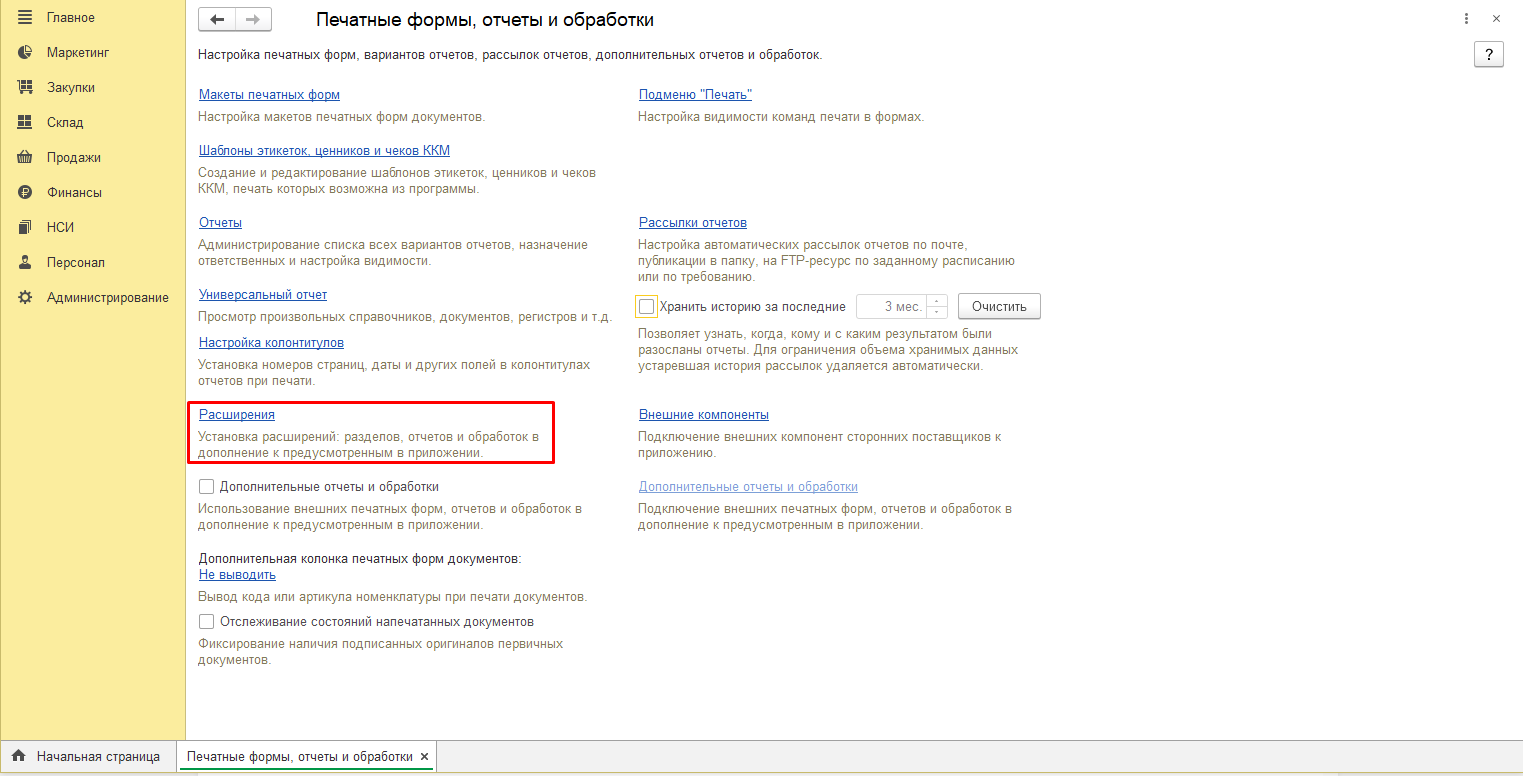 7. Работа с добавляемым блоком расширения представлена в виде раздела, открыть который можно из панели разделов