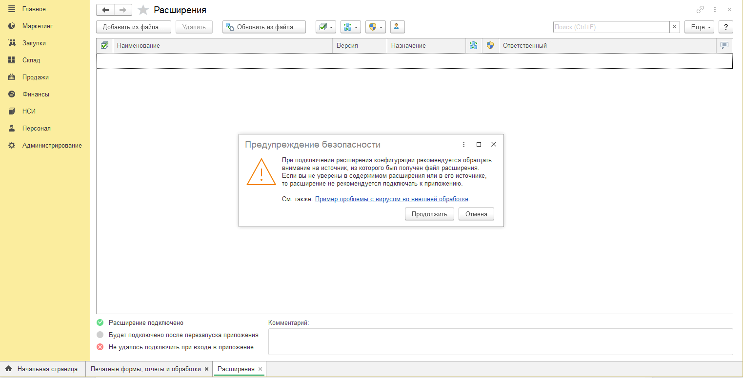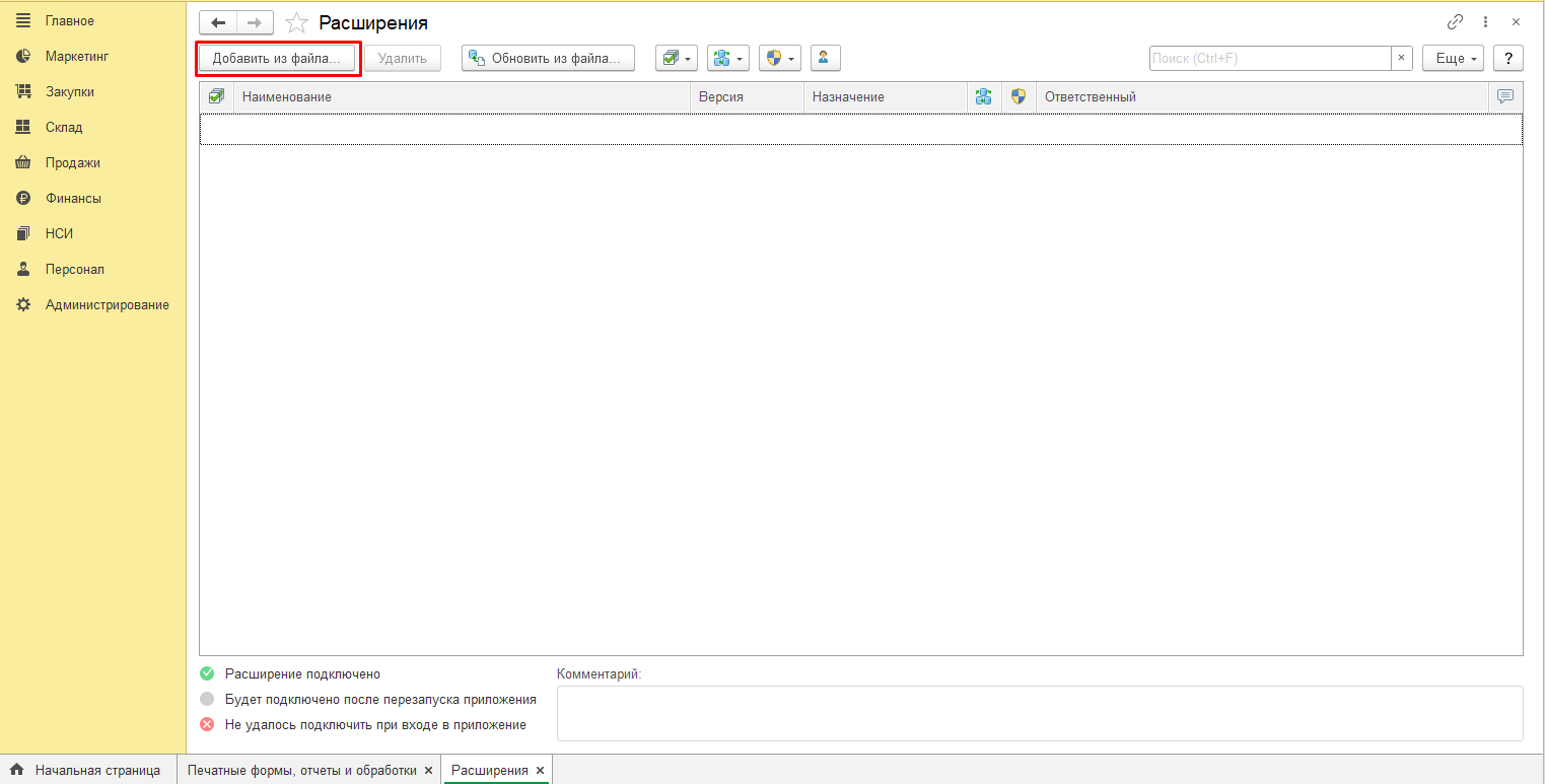 3. Нажмите на кнопку "Добавить" и выберите файл с расширение (*.cfe) данной поставки. Откройте его